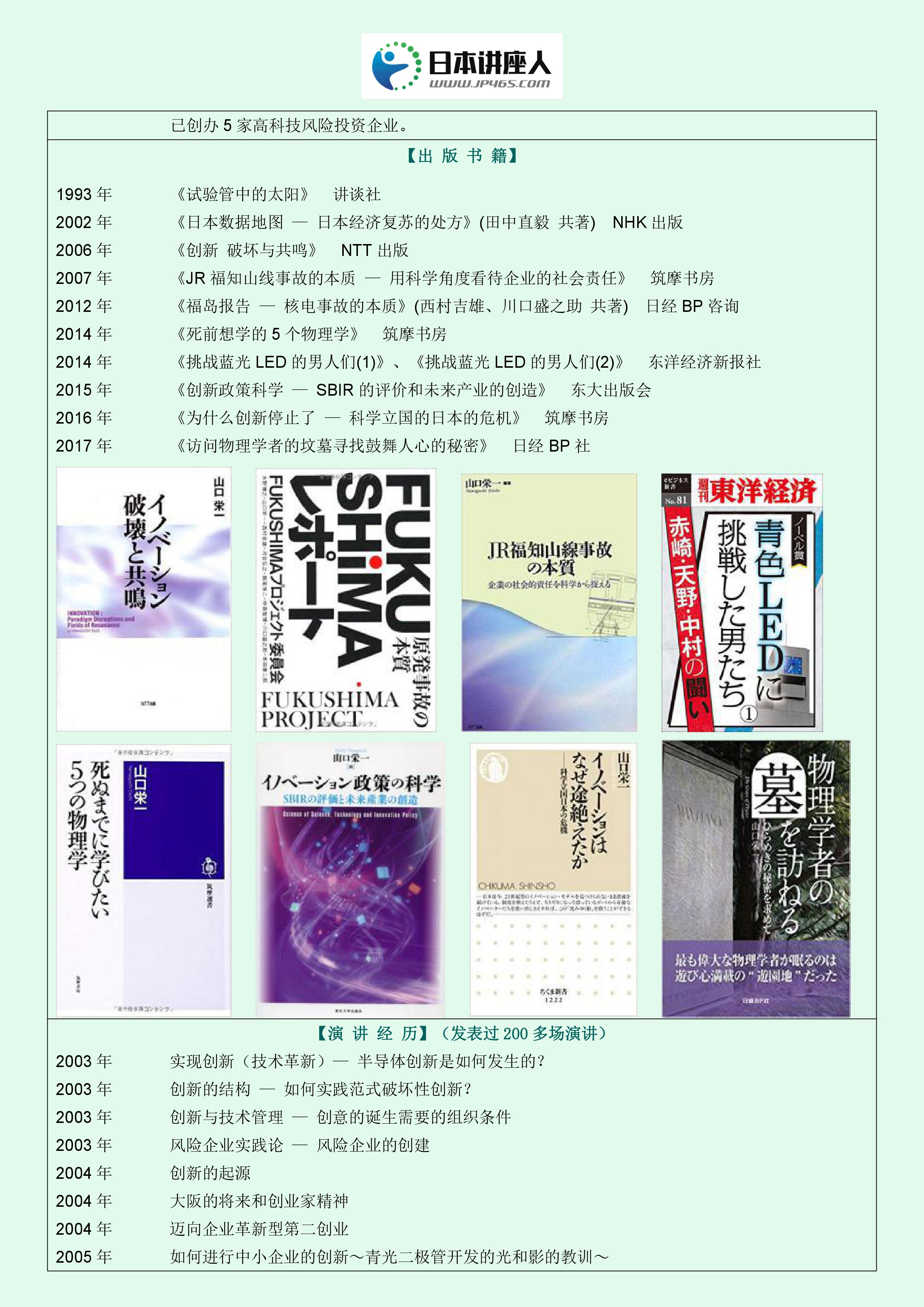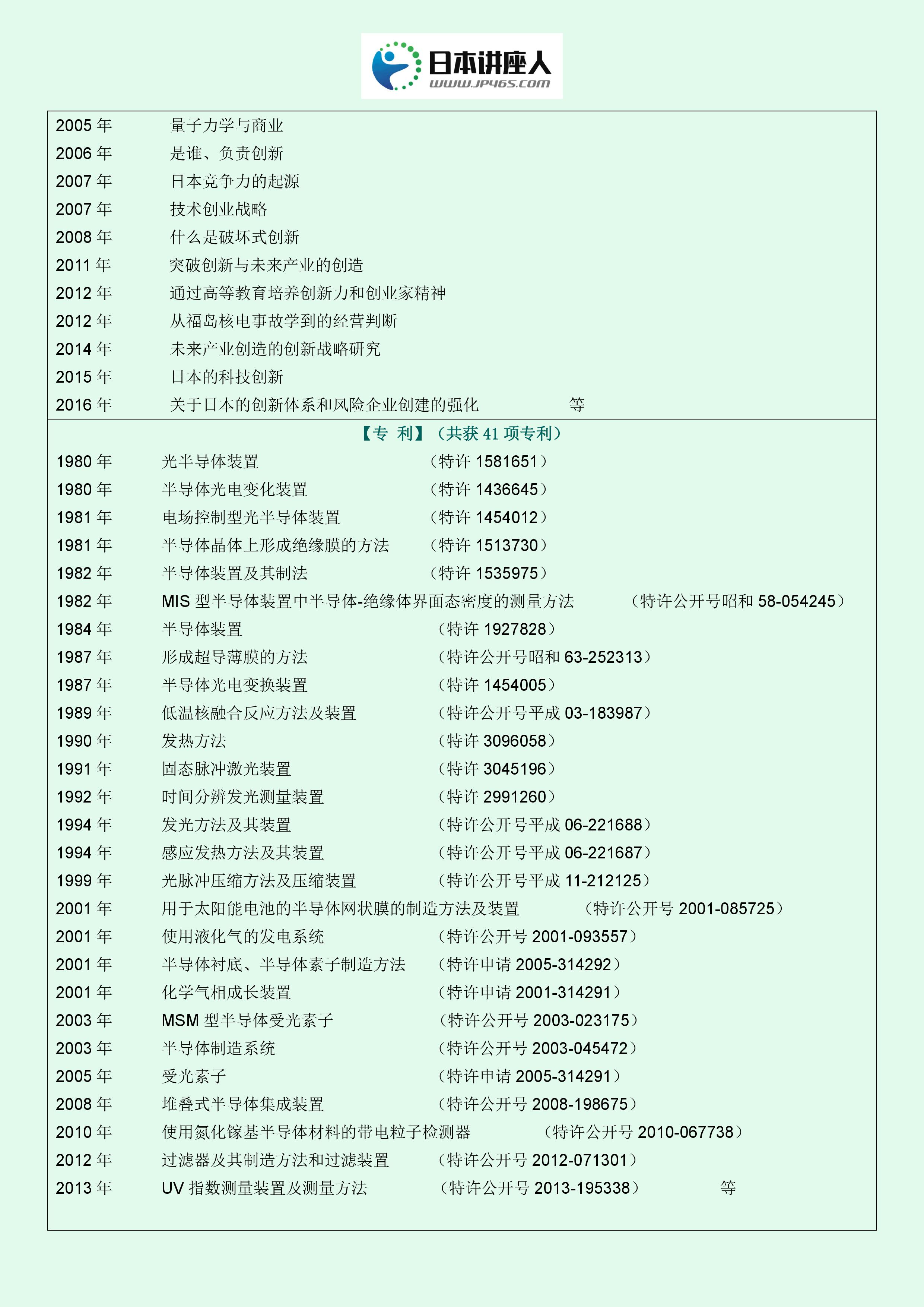 讲座内容创新的起源和结构、如何创新、未来产业创造的创新战略研究、风险投资企业实践论. 技术创业战略、创意的诞生需要的组织条件、从福岛核电事故学到的经营判断量子力学和商业、半....