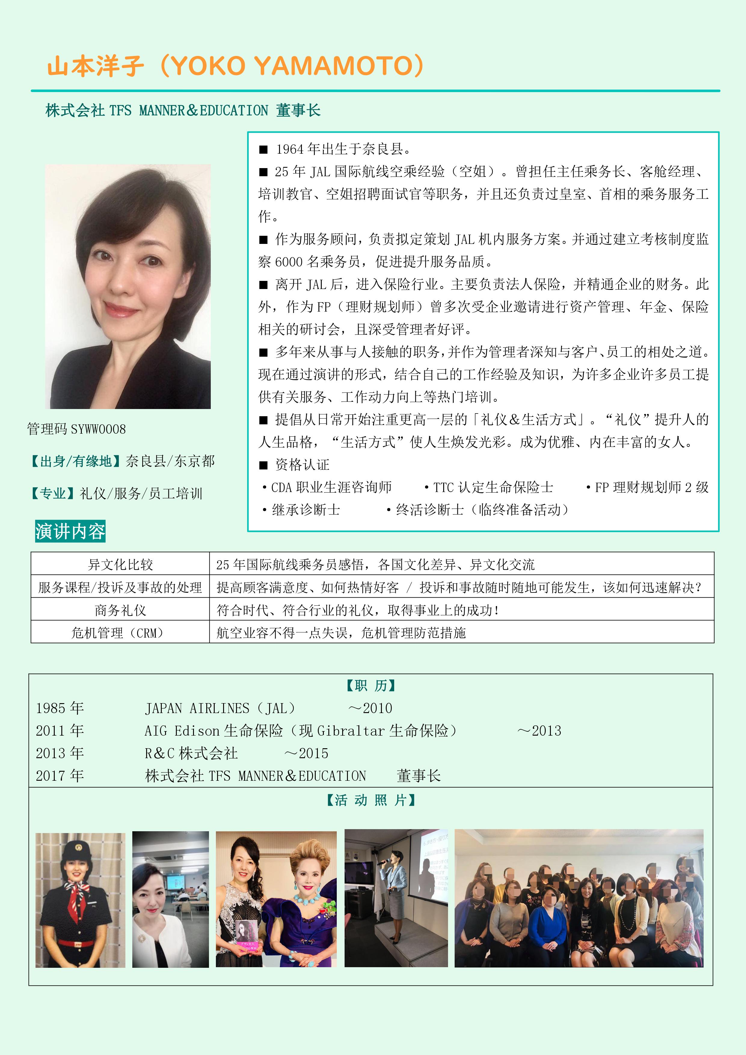 讲座内容25年国际航线乘务员感悟,各国文化差异、异文化交流 提高顾客满意度、如何热情好客 / 投诉和事故随时随地可能发生,该如何迅速解决?符合时代、符合行业的礼仪,取得事业上的成....